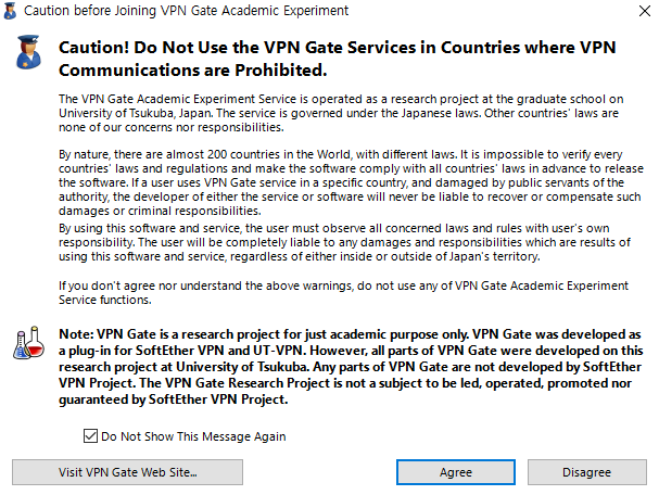 ↓주의 사항에 대한 내용이며 [Agree]를 눌러 다음으로 넘어갑니다.