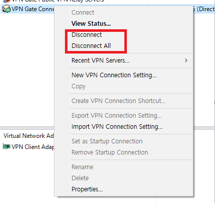↓접속 해제 시에는 마우스 오른쪽 버튼을 눌러서 연결을 해제합니다.