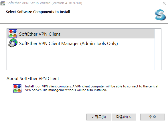 ↓[SoftEther VPN Client]를 선택하고 [다음]을 누릅니다.