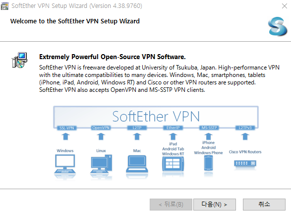 ↓[SoftEther VPN Client]를 선택하고 [다음]을 누릅니다.