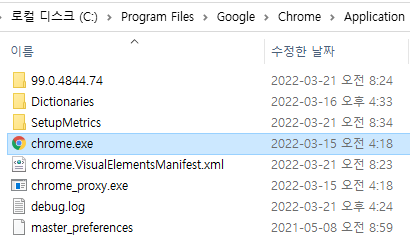 ↓아래의 경로의 [chrome.exe] 실행파일을