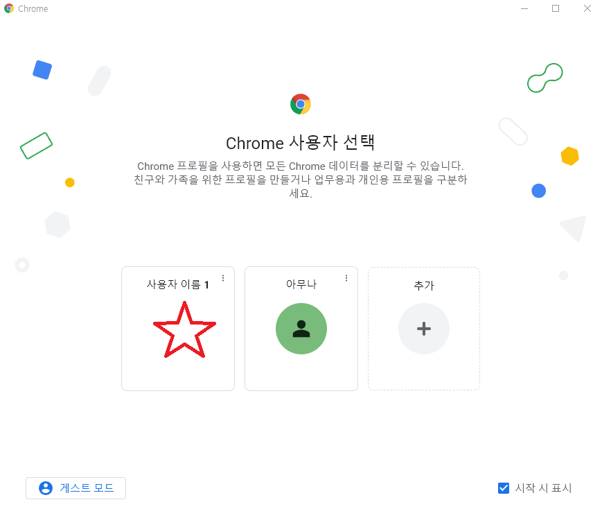 ↓크롬을 실행하면 바로 게스트 모드로 실행이 됩니다.