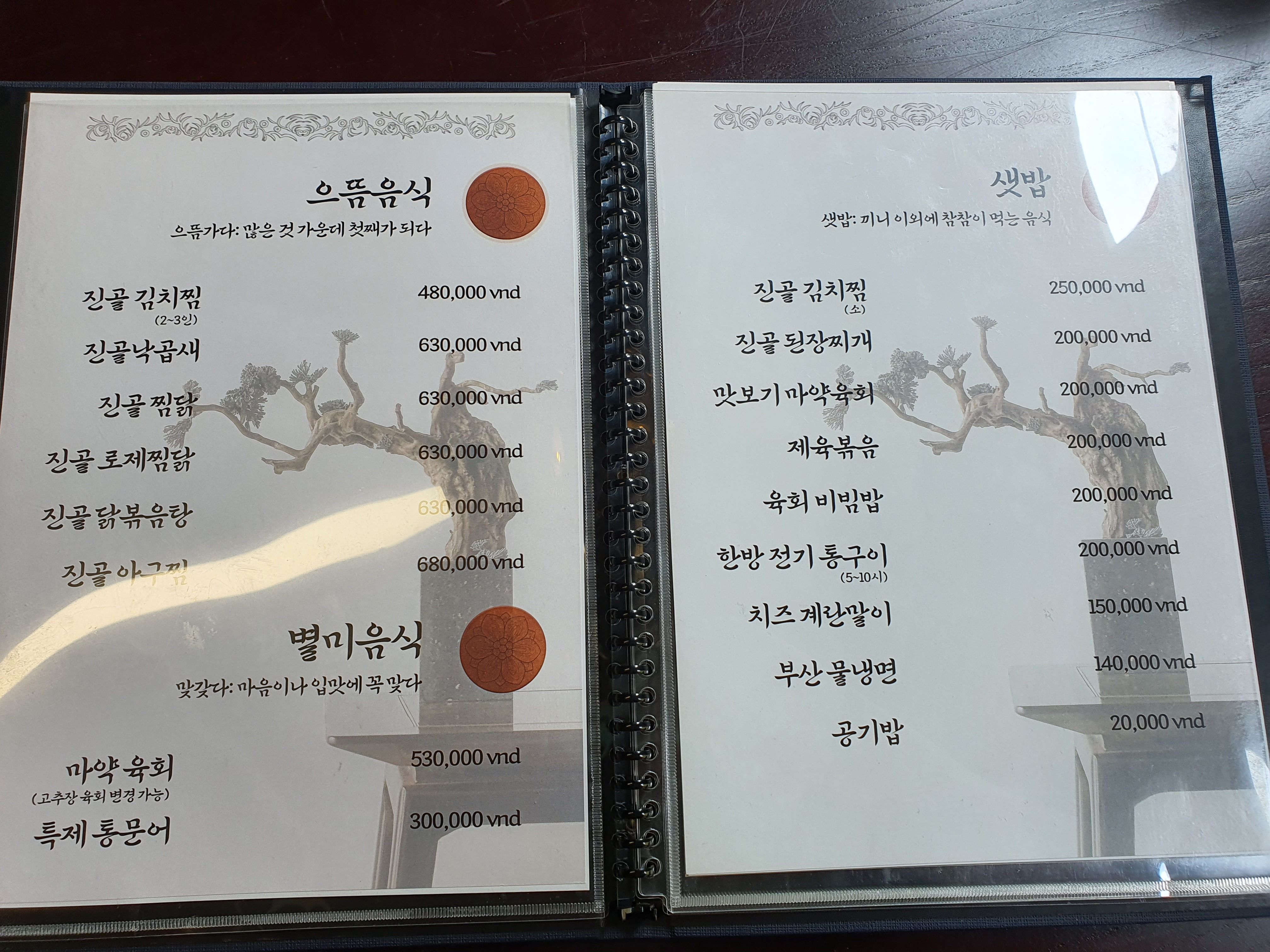 ▼진골 식당 메뉴 정보