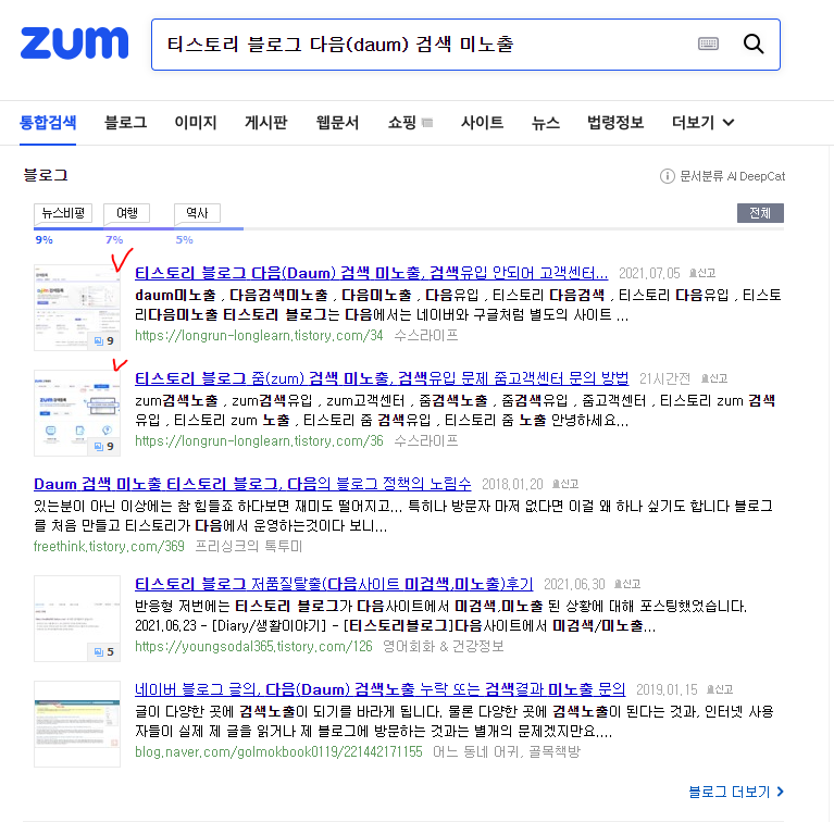 티스토리 블로그 줌(zum) 검색 미노출, 검색유입 문제 해결