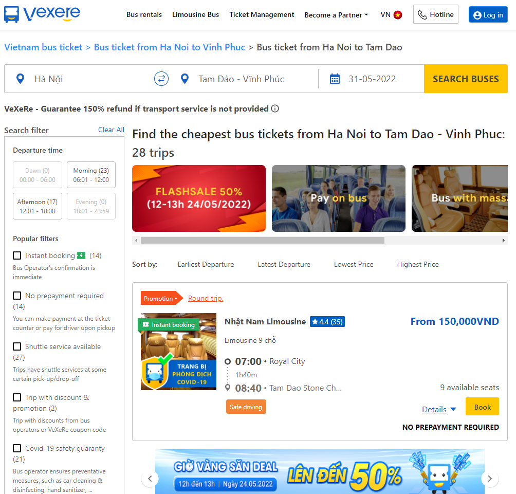 VeXeRe - 차량 예약 시스템, 리무진, 온라인 티켓 베트남의 Tet 휴가