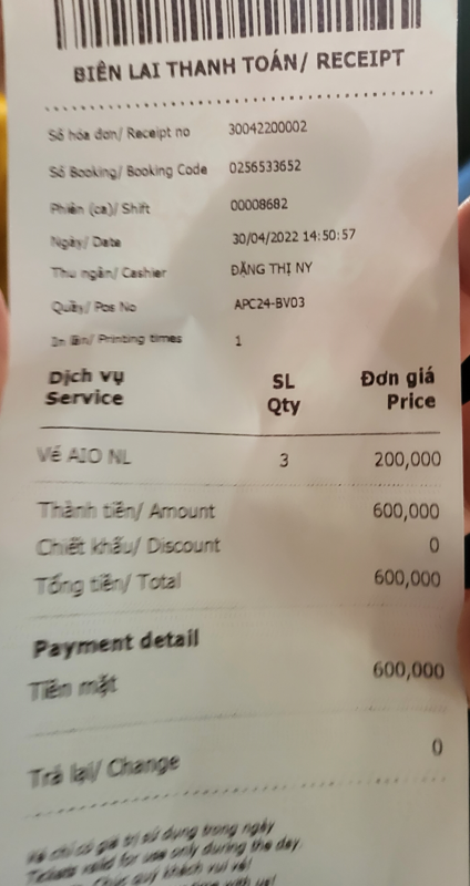 200,000 VND(한화 약 \10,000)에 포함되어 있습니다.
