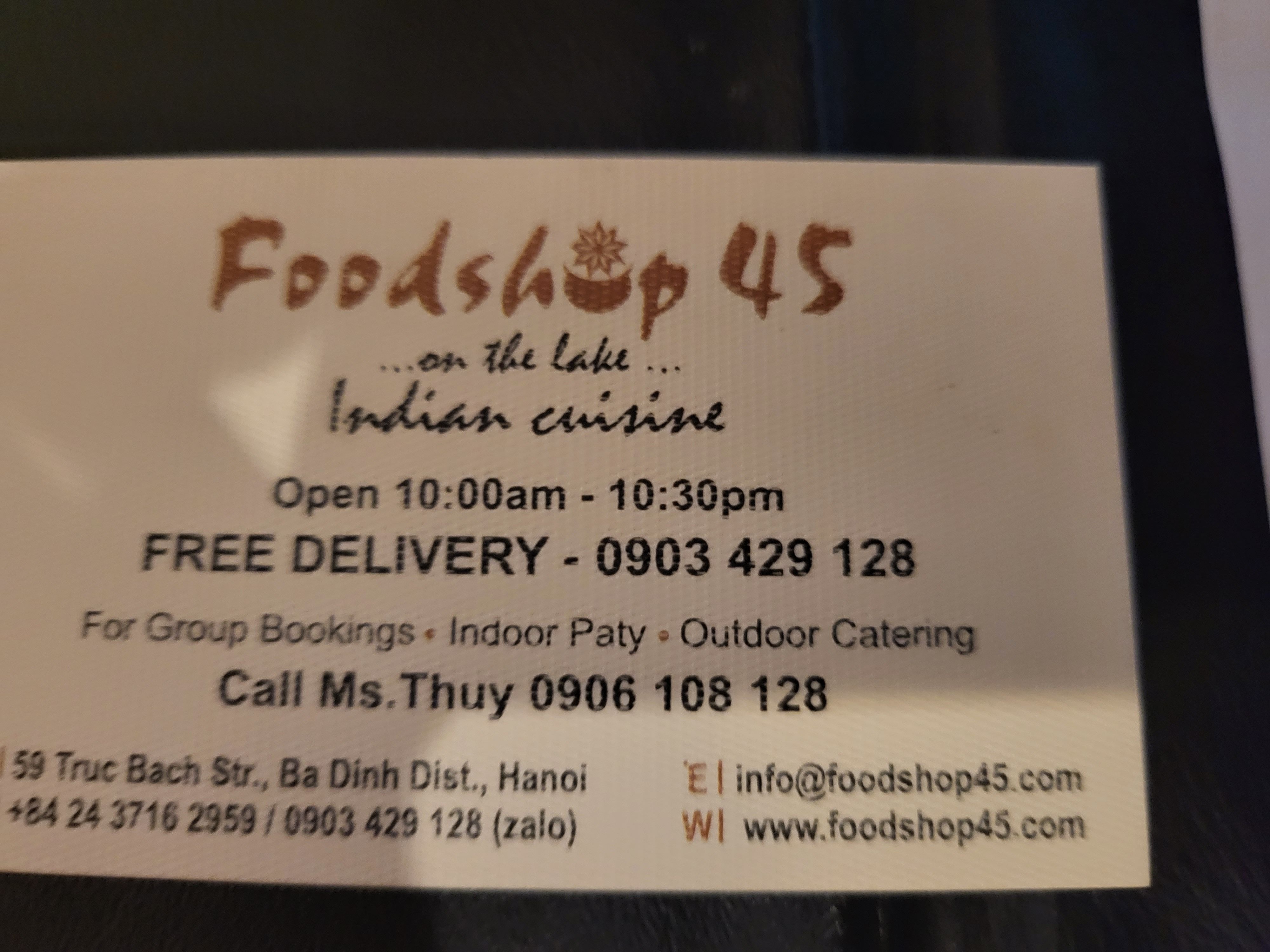 E info@foodshop45.com W www.foodshop45.com T 844- 3716 2959/ 3715 1465 A 59 Truc Bach, Ba Dinh,... 59 Truc Bach street, 베트남 하노이 1000