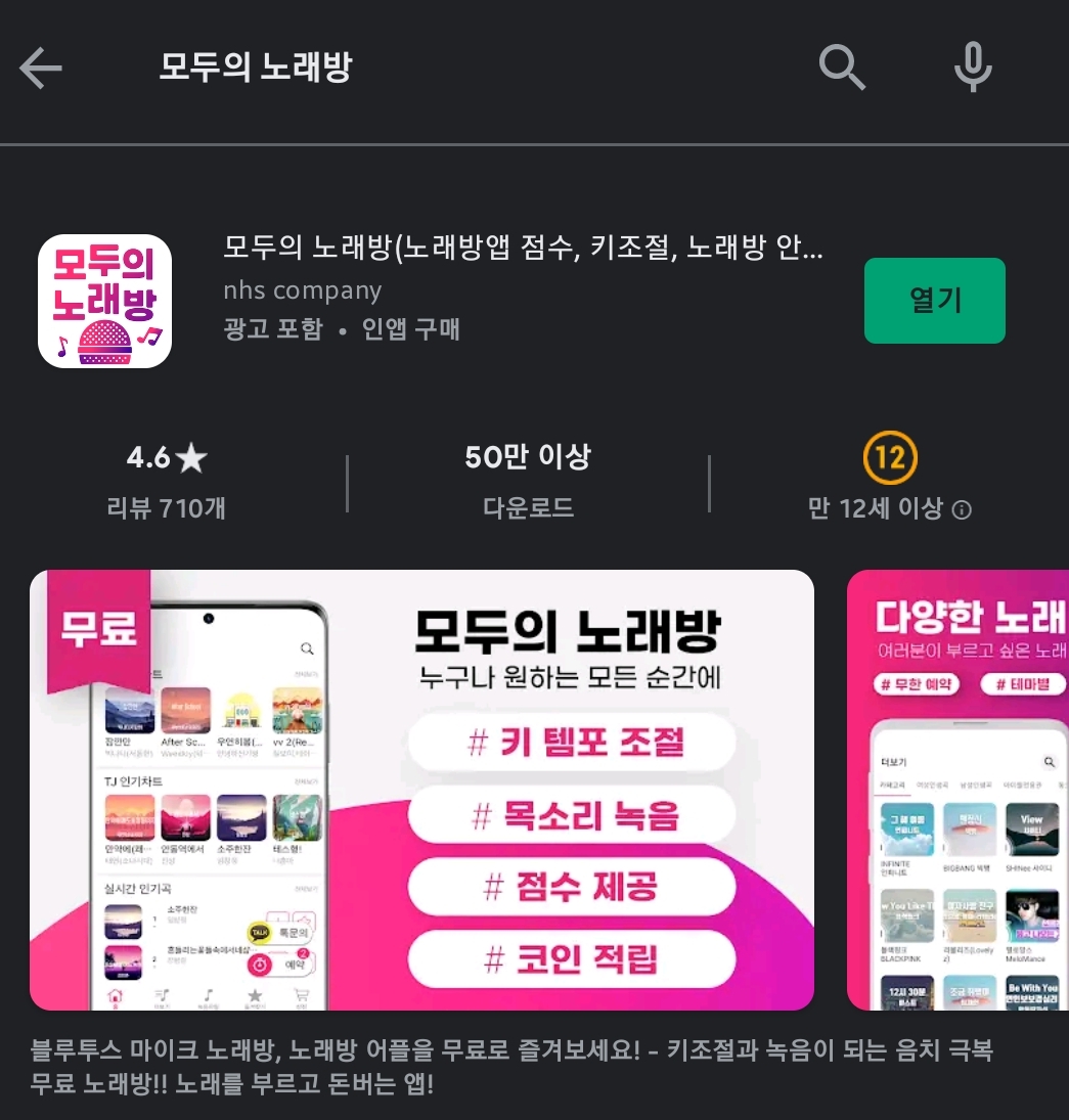 노래방 어플은 '모두의 노래방' 이란 어플을 이용하였고