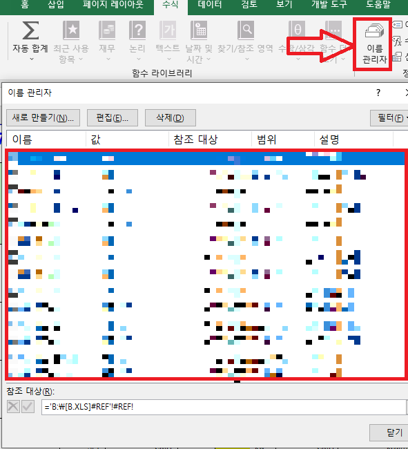 [수식] → [이름 관리자]에서 모든 이름을