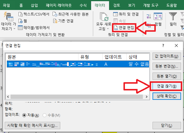[데이터] → [연결 편집]로 들어가서