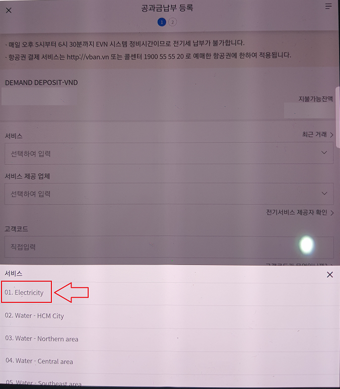 ▼순차적으로 [서비스], [서비스 제공 업체], [고객코드] 순으로 진행합니다.