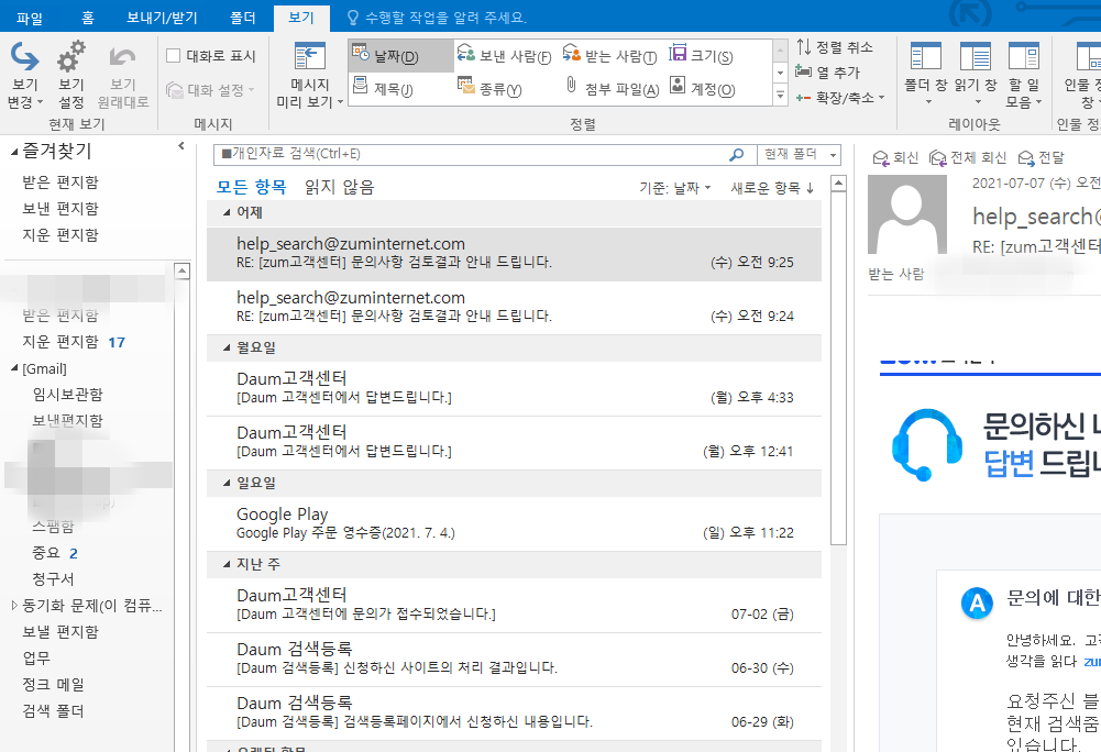많은 같은 화면이라도 많은 메일 내용을 볼 수가 없었습니다.