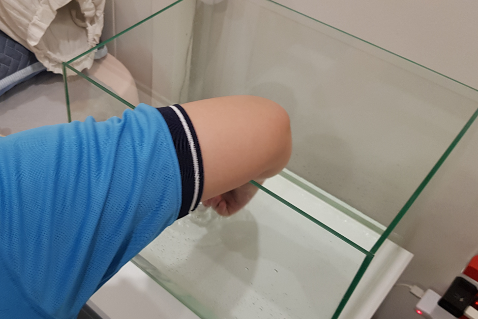 신난 저희 딸은 우파루파가 살 어항을 준비하였습니다.