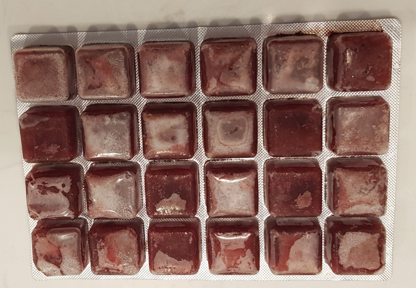 물 온도를 20°C 이하로 맞추기 위해서 페트병을 항상 얼려서 수시로 담가 주었습니다.