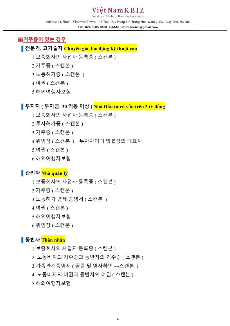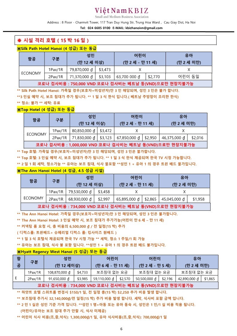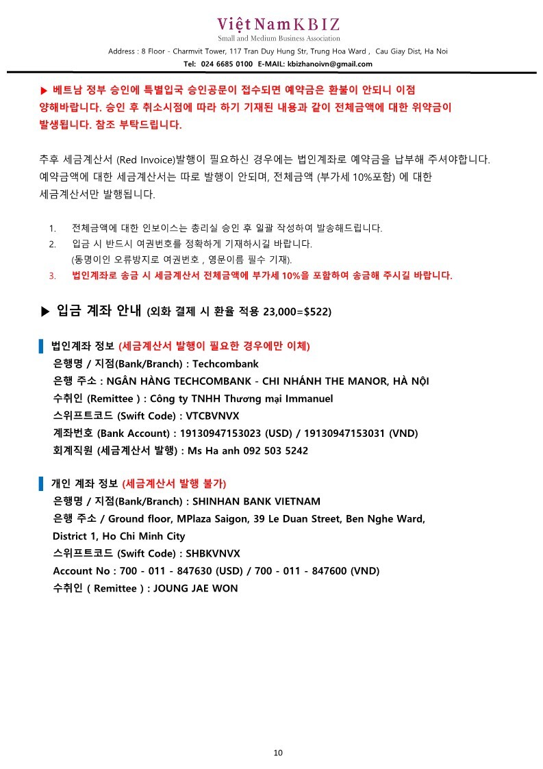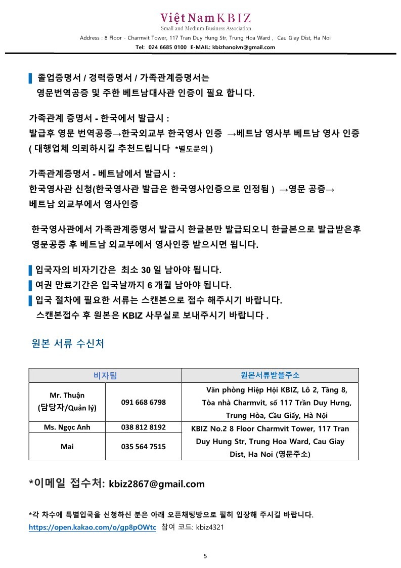 베트남 KBIZ 중소기업연합회 개별입국 안내문