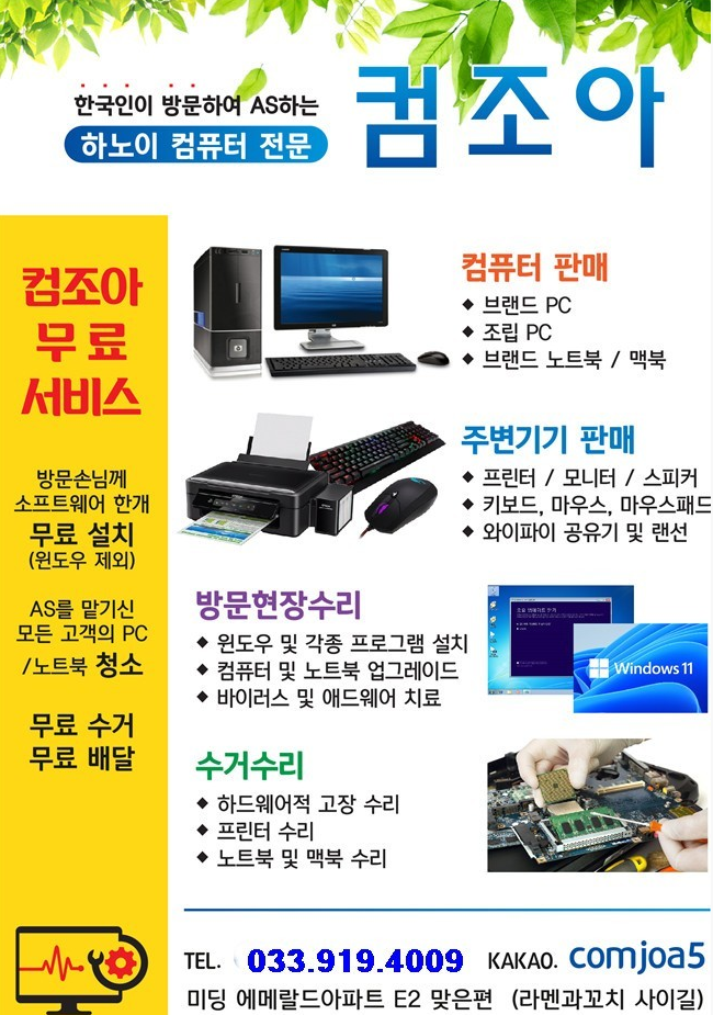 한국인이 방문하여 AS하는 컴조아 입니다.(굿)