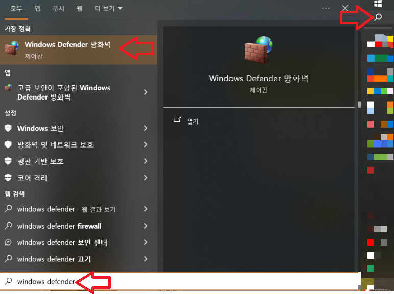 ☞ [Windows Defender 방화벽] 실행합니다. ↓