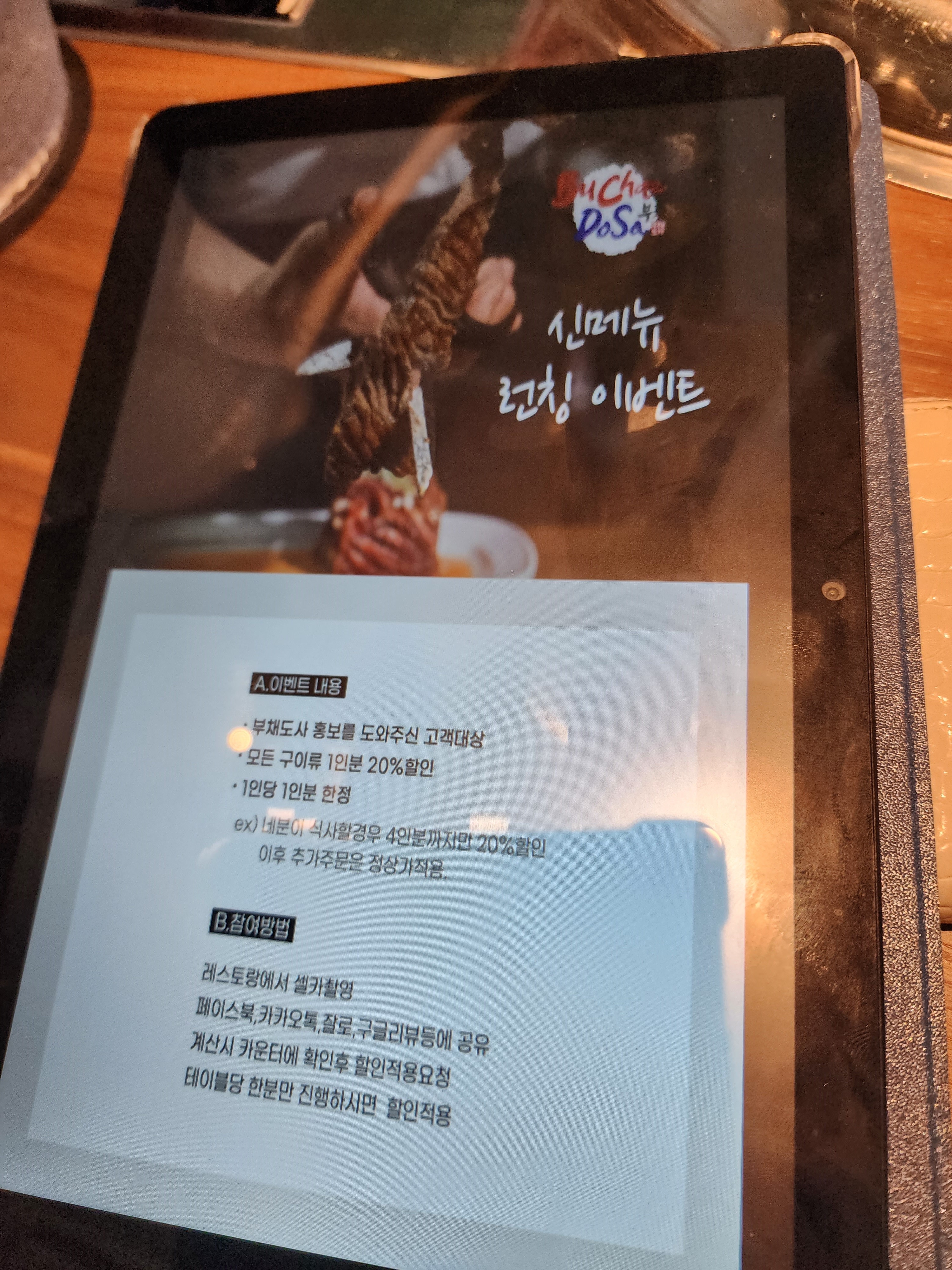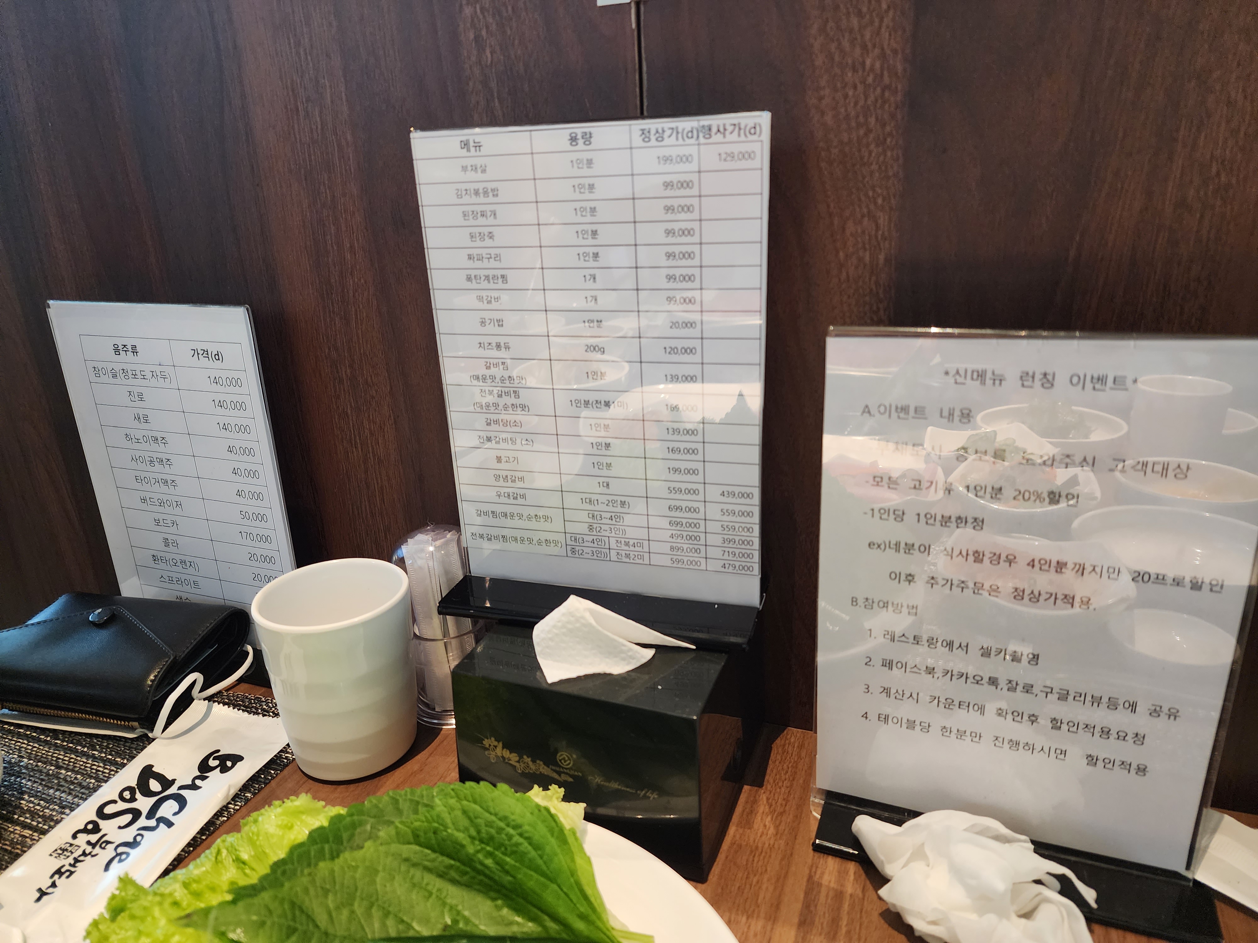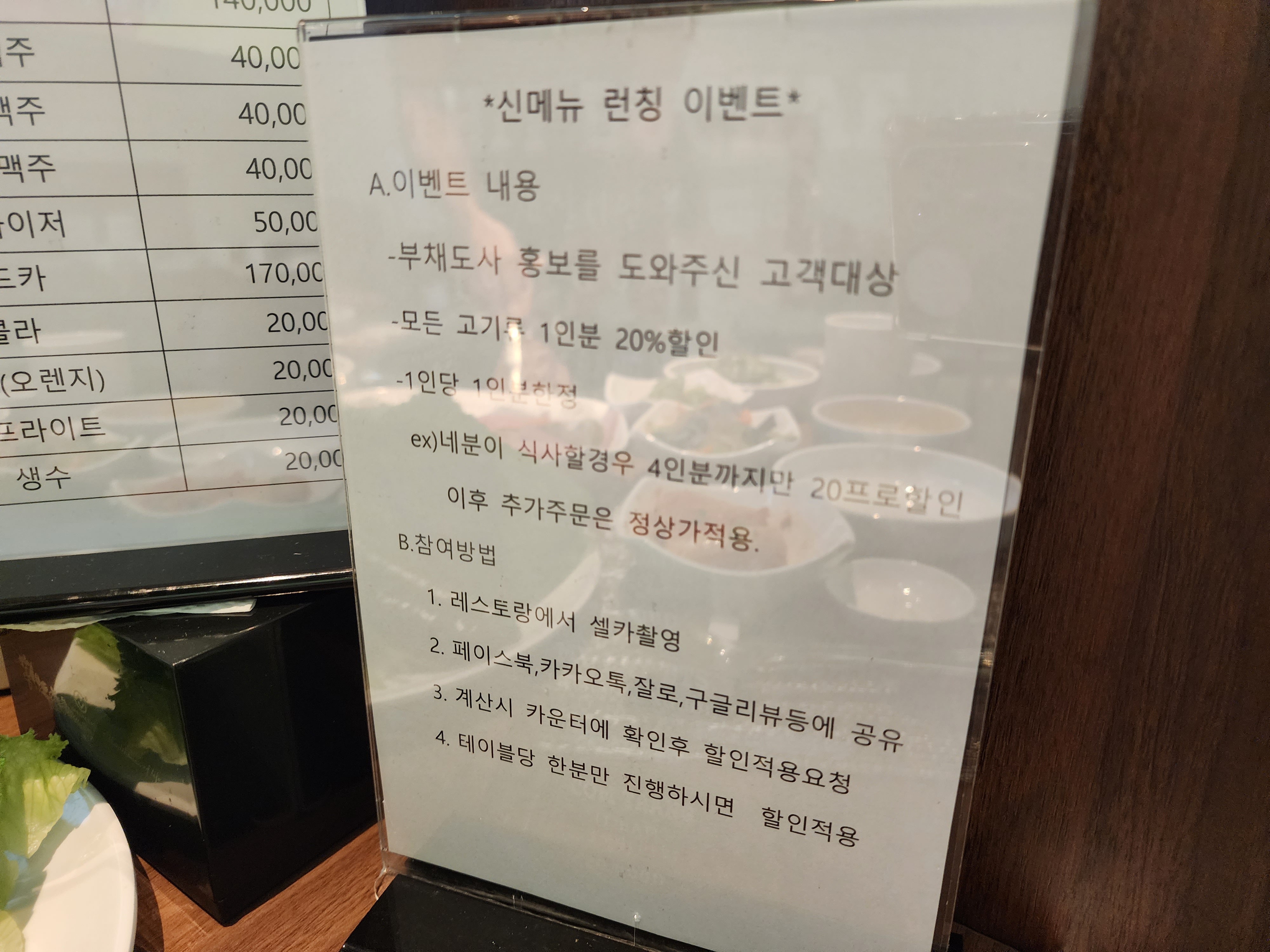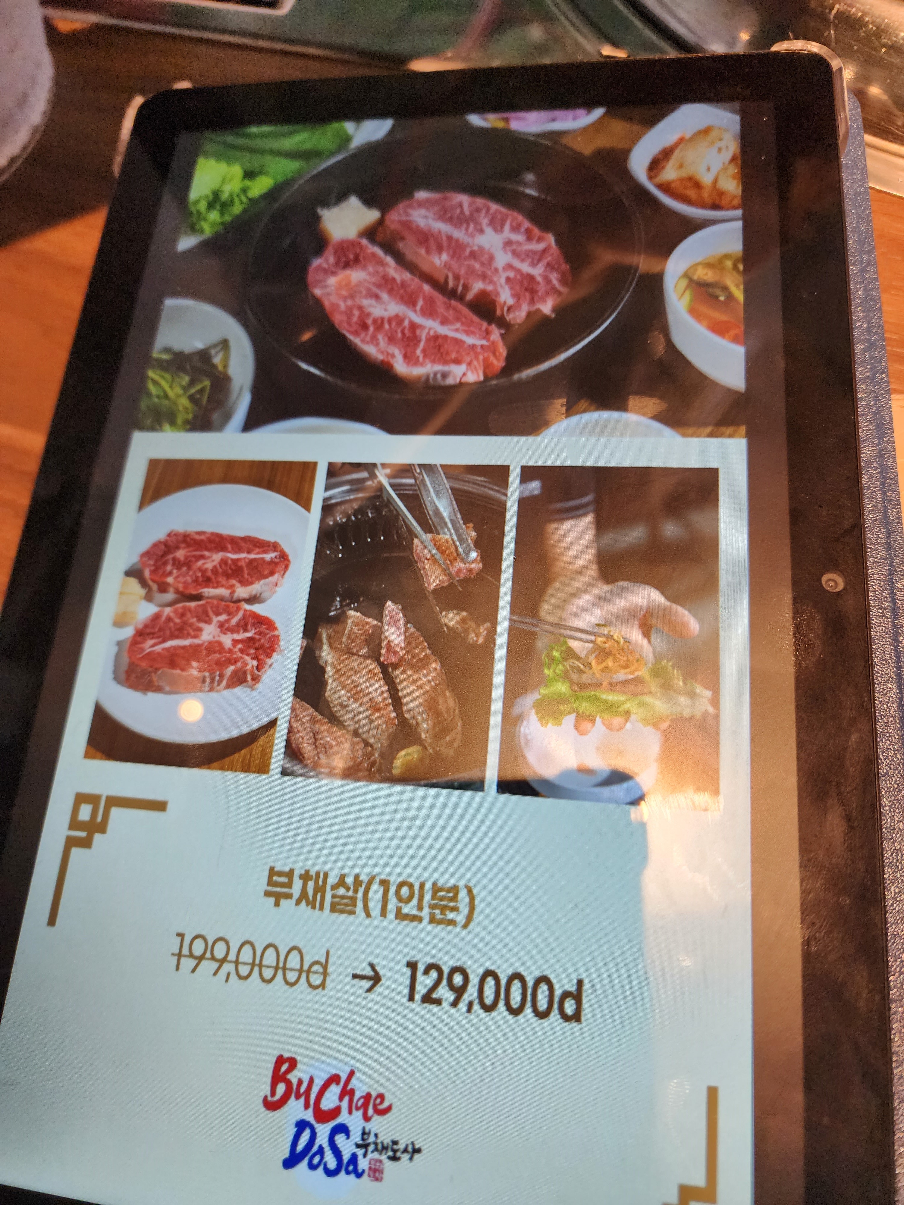 부채살 세일을 하고 있고 직원이 고기를 맛있게 구워줘서