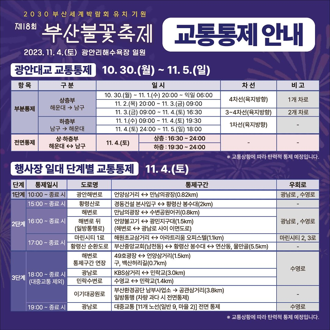 제18회 부산불꽃축제 교통대책 편을 알려드립니다.
