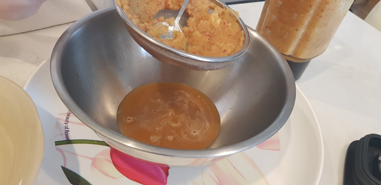 믹서기로 가는데 잘 안 갈려서 물을 조금 넣어서 갈았습니다.