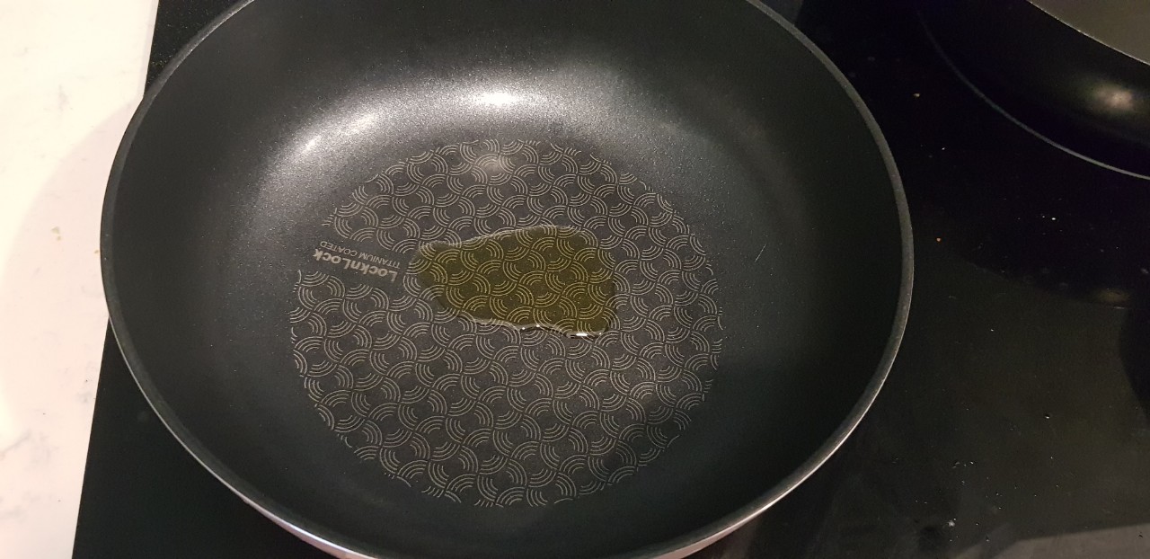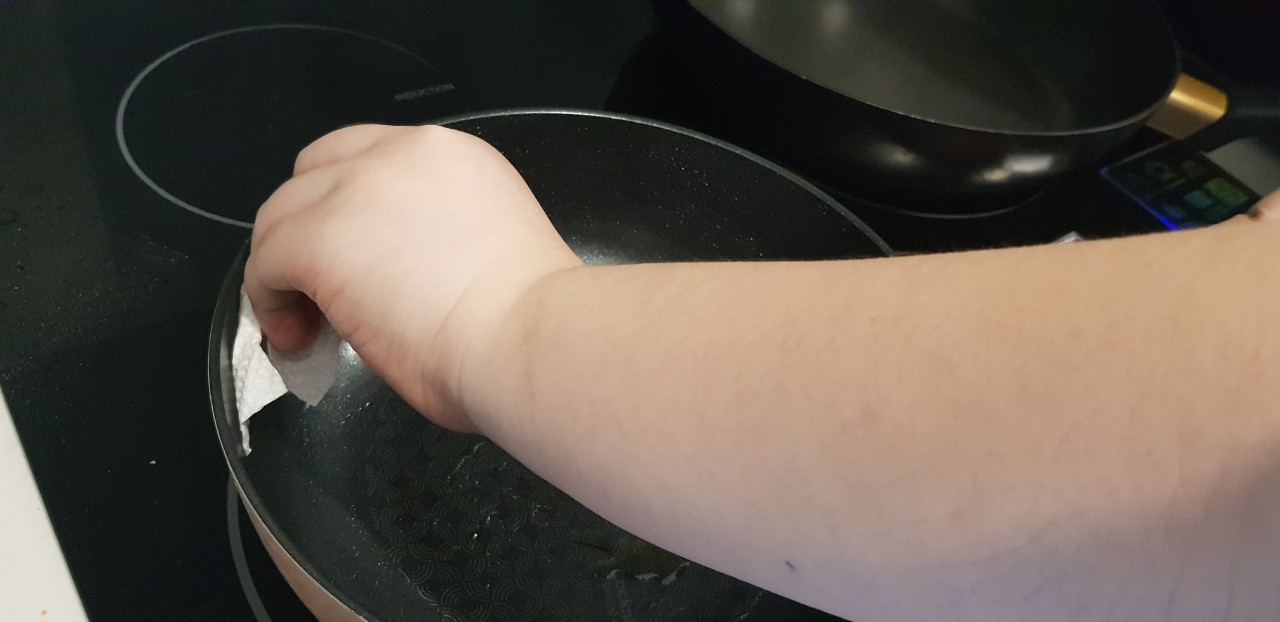 키친타울을 이용해 프라이팬 전체를 둘러 줍니다.