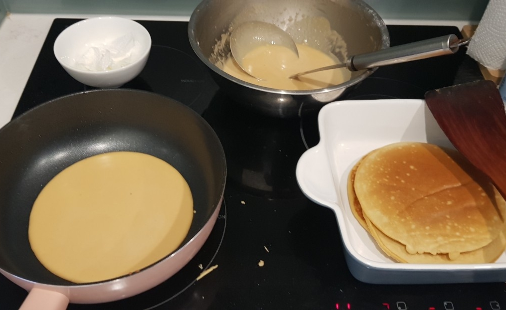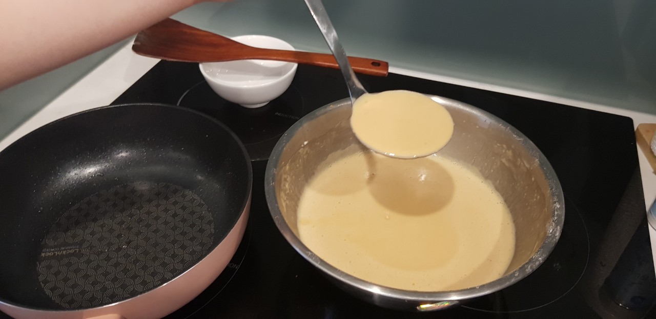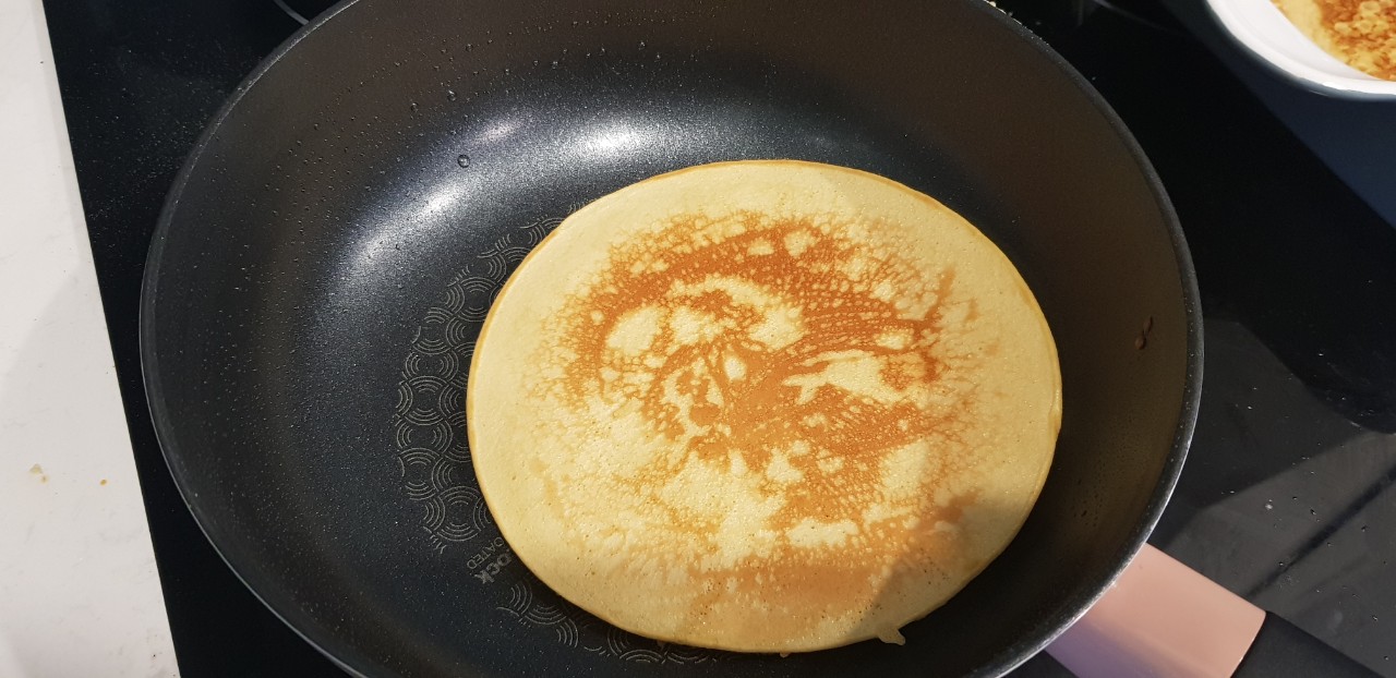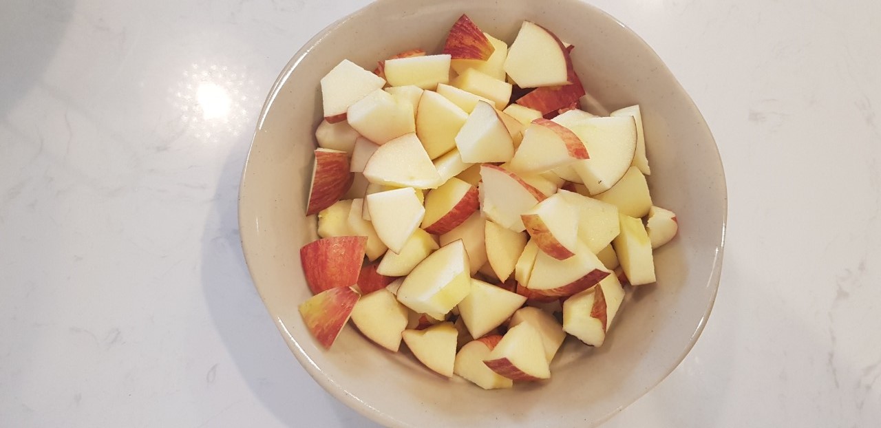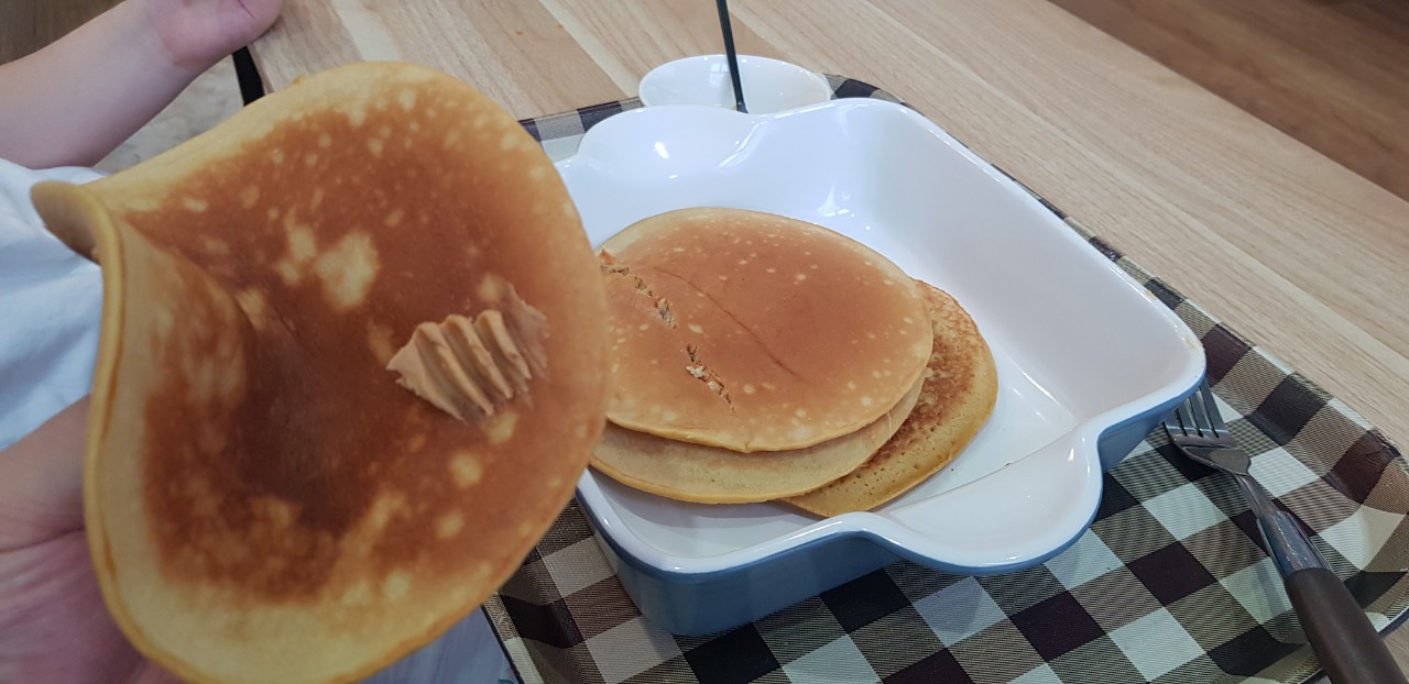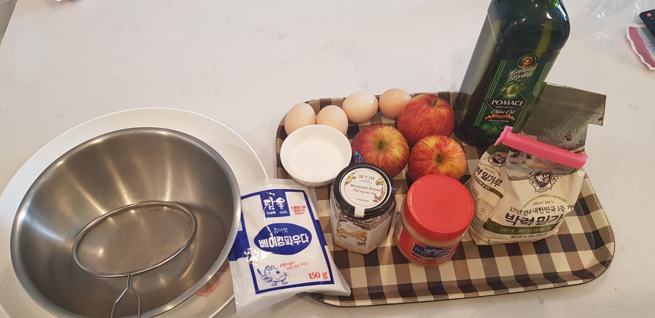 점심을 먹으면서 오늘 일과 끝나고 사과 팬케이크 만들어보기로 약속을 하고
