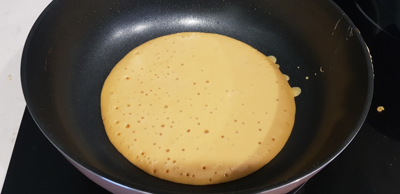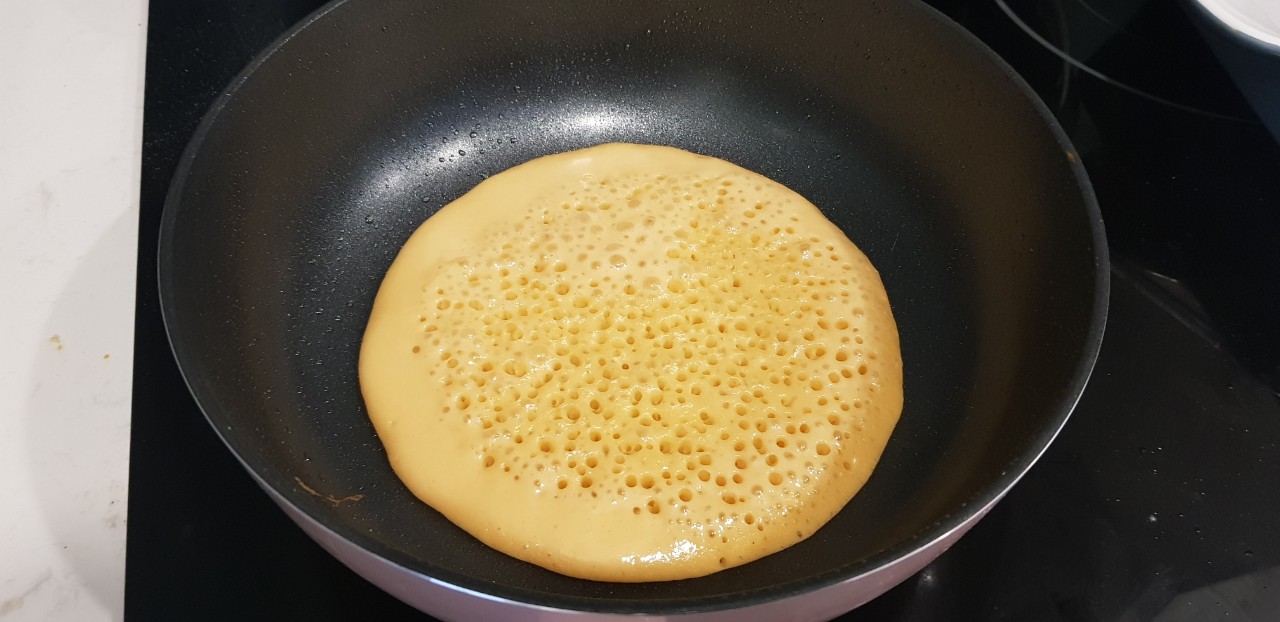 이 정도 구멍들이 보이면 뒤집어서 구워 줍니다.
