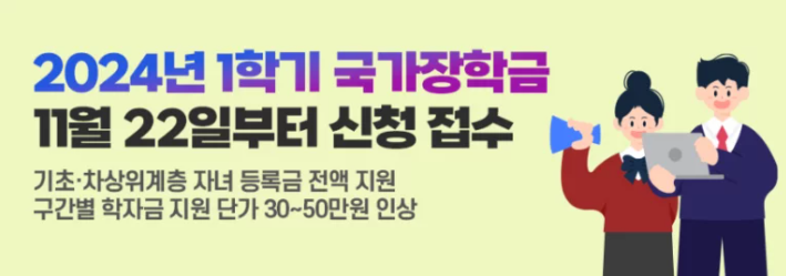 안녕하세요, 학생 여러분들에게 기쁜 소식이 있습니다. 교육부와 한국장학재단이 손을 잡고 2024학년도 1학기 국가장학금 1차 신청을 준비했습니다!