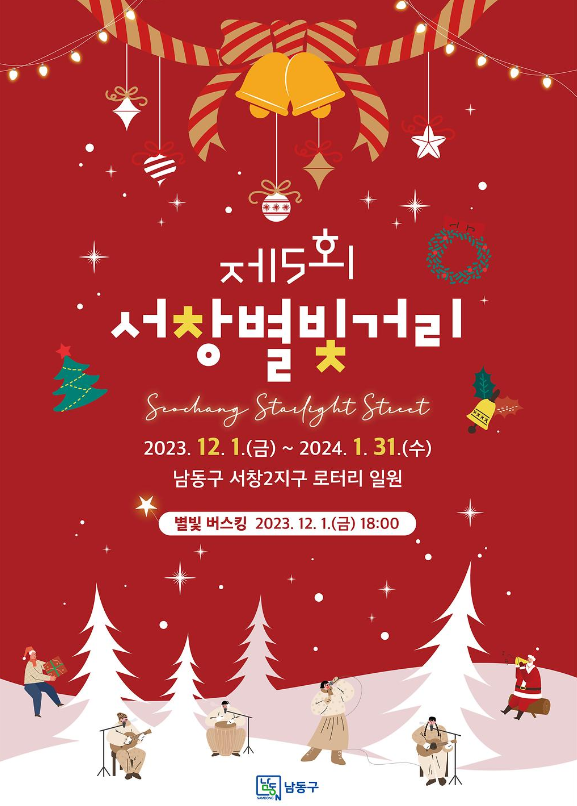 2019년부터 시작해 2023년에 5회째를 맞이하는 서창 별빛 거리는 겨울과 크리스마스에 어울리는 별빛 거리를 조성하여 지역주민과 관광객들에게 볼거리를 제공하며, 연말연시에 따뜻한 위로와 희망을 전하는 지역 특화 관광축제입니다.