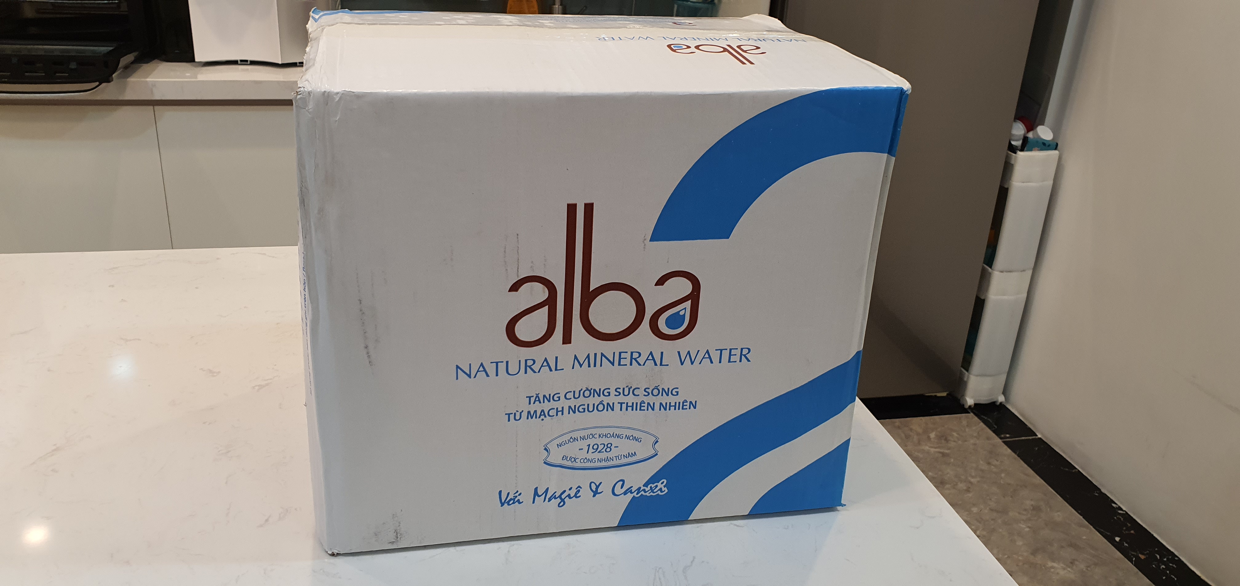 왼쪽이 베트남 Alba 생수, 오른쪽이 한국 삼다수