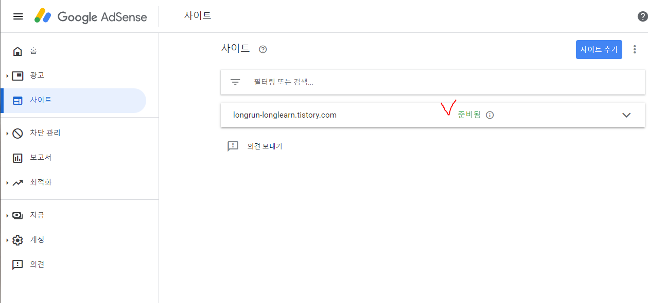 사이트 추가를 하면 문제없을 시 "준비 중"으로 표시됩니다.