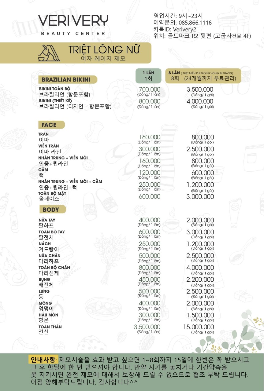 하노이에서 만나는 뷰티의 신세계 - 베리베리(브라질리언 왁싱, 레이저제모, 물광주사)