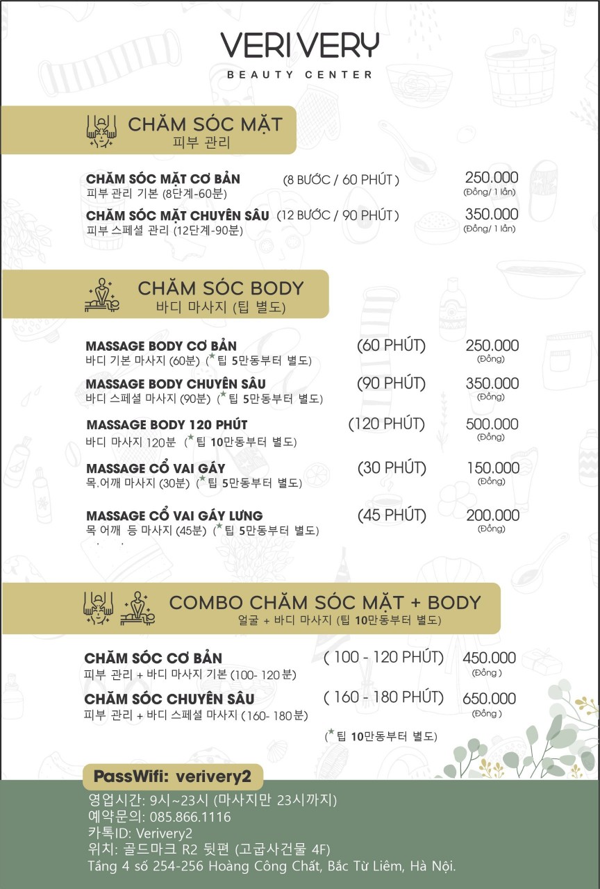 하노이에서의 생활, 그리고 여행 중에도 자신을 가꾸고 싶은 분들에게 베리베리 뷰티 스파는 최고의 선택이 될 것입니다. 여러분의 뷰티와 웰빙을 위해 최선을 다하는 베리베리를 지금 바로 경험해보세요! 💖