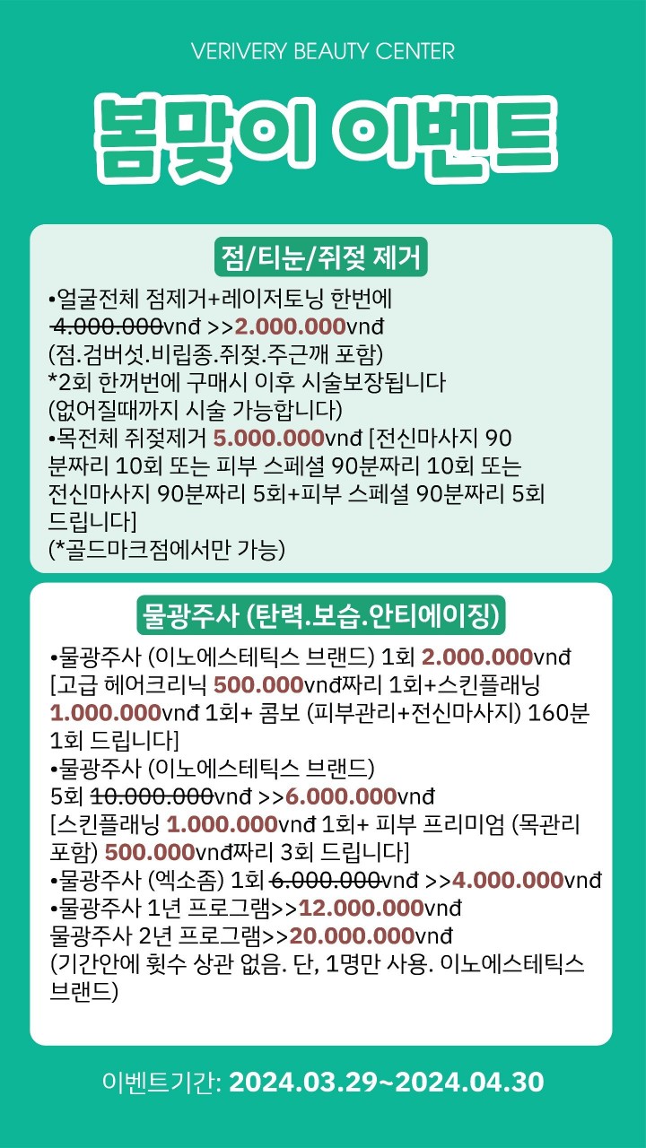 하노이에서의 생활, 그리고 여행 중에도 자신을 가꾸고 싶은 분들에게 베리베리 뷰티 스파는 최고의 선택이 될 것입니다. 여러분의 뷰티와 웰빙을 위해 최선을 다하는 베리베리를 지금 바로 경험해보세요! 💖
