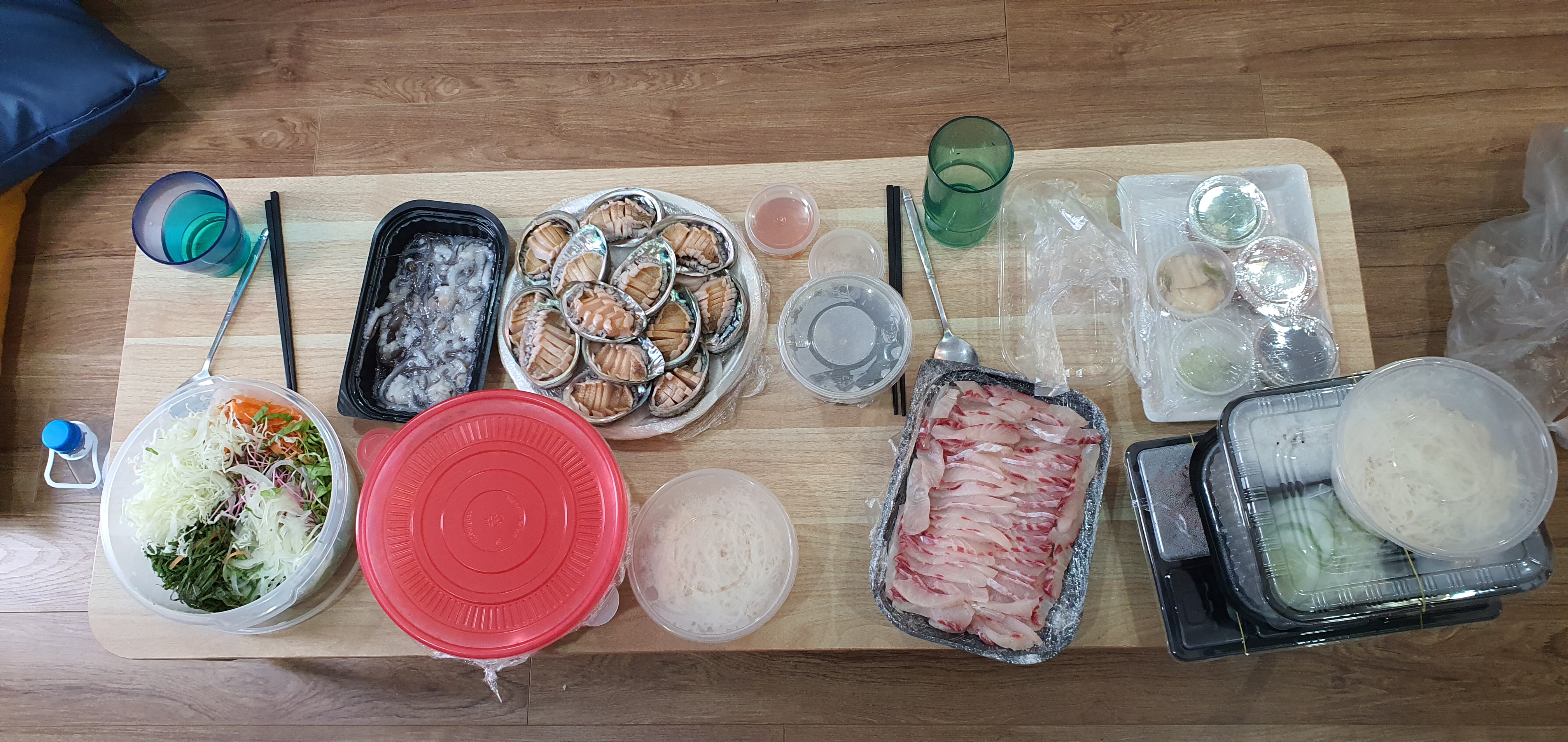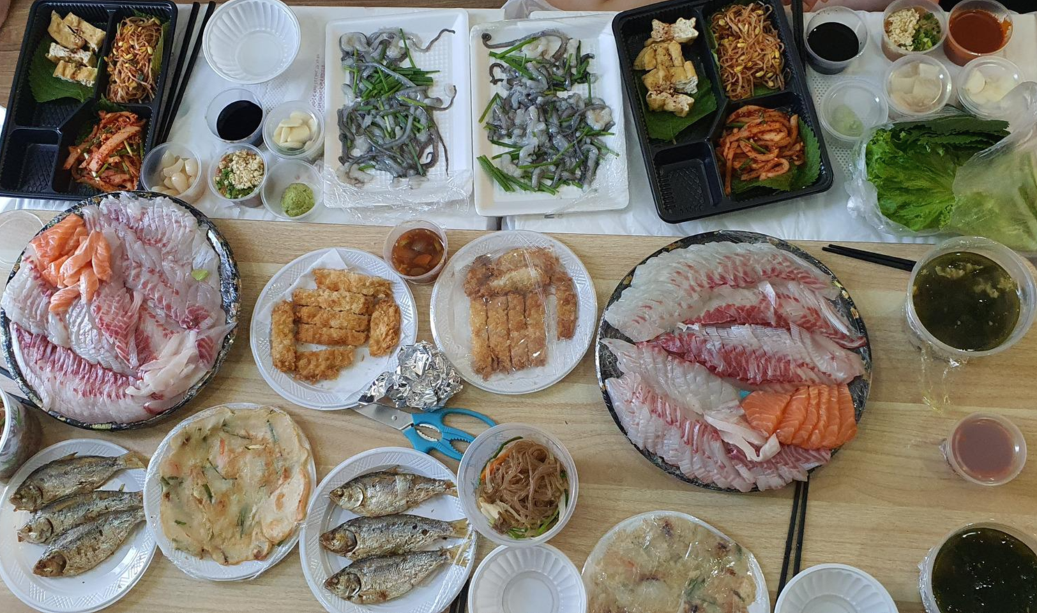 최근 딸아이 생일 음식으로 회를 주문한 모습입니다.