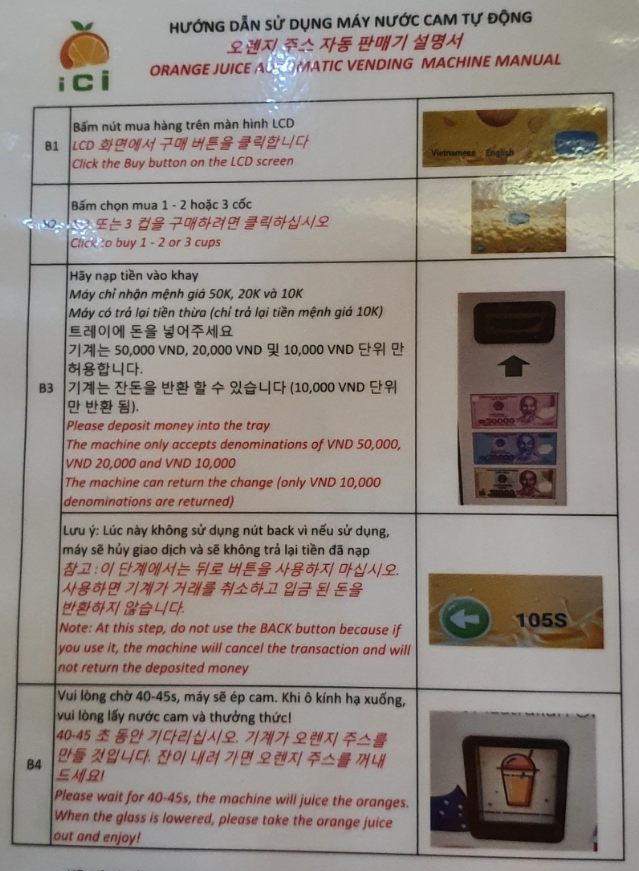 베트남에 다른 자판기들은 보통 거스름돈이 나오지 않으니