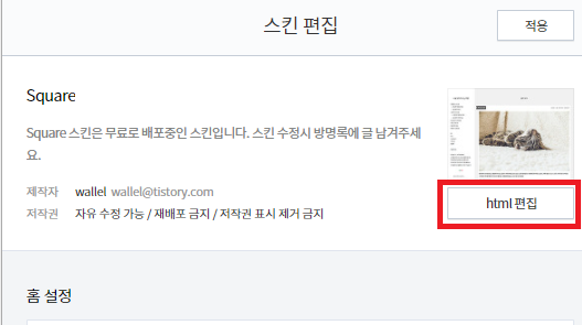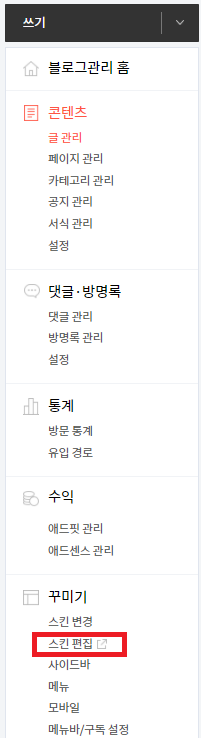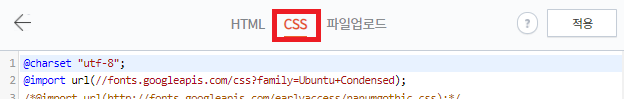 스킨 편집 → html 편집 → CSS 순으로 클릭하여 들어갑니다.