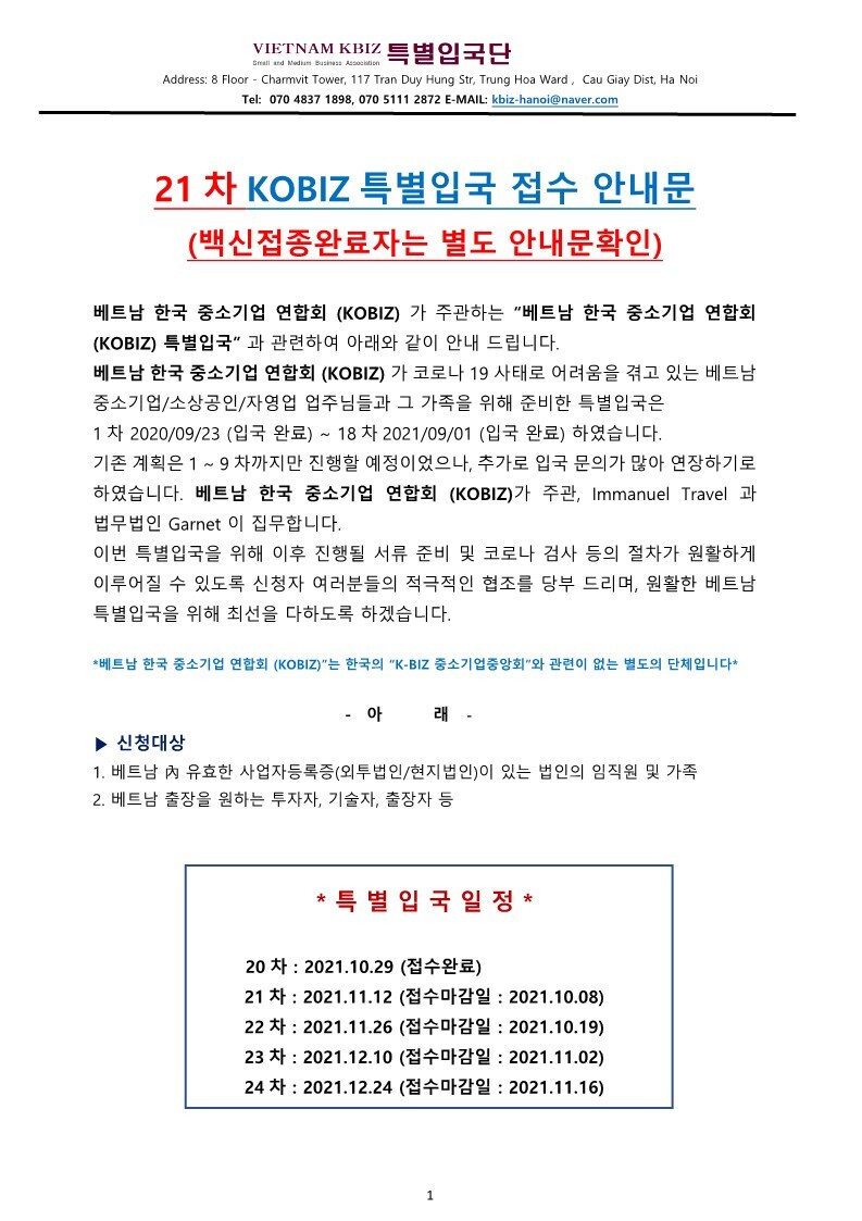 | 주베트남 한국중소기업연합회(KOBIZ) - 베트남 개별입국 안내문 (0) | 2021.09.30 |