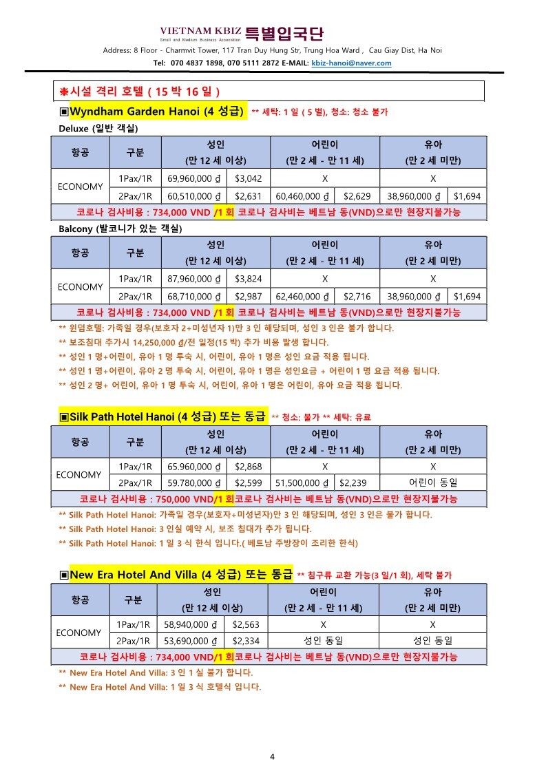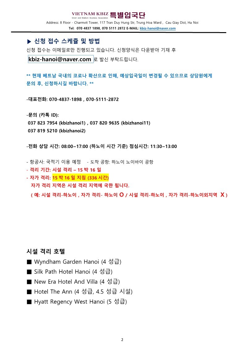 특별입국 일정은 베트남 코로나19 지침 상황에 따라 변경 될 수 있습니다.
