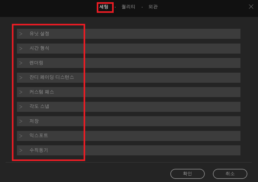상기 '세팅' 탭에서 원하는 내용으로 설정하시면 됩니다.