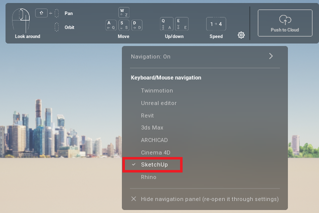기본 적인 마우스, 키보드 조작법이 나옵니다. 여기서 화살표 톱니바퀴를 클릭하면 조작법을 원하는 프로그램의 조작법과 동일하게 설정할 수 있게 됩니다. 저 같은 경우는 SketchUp이 익숙해서 선택을 하였습니다.