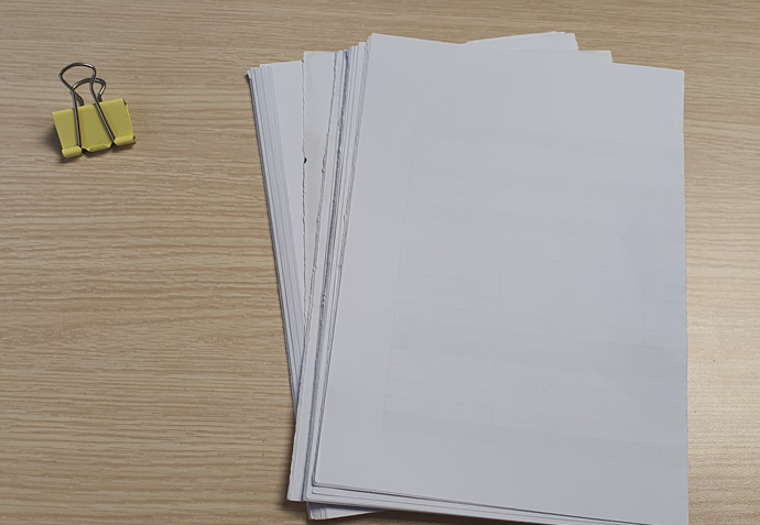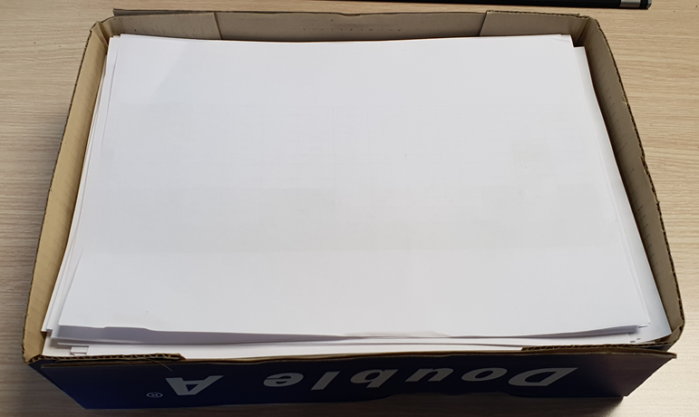 A4 박스 뚜껑을 이용하여 이면지가 나올 때마다 보관하고 있는 보관함입니다. 의자에 앉아서 손이 닿기 쉬운 자리에 위치하고 있습니다. 개인적으로 설계를 하는 지라 A3 이면지 또한 A3 용지 뚜껑을 이용하여 보관하고 있습니다.