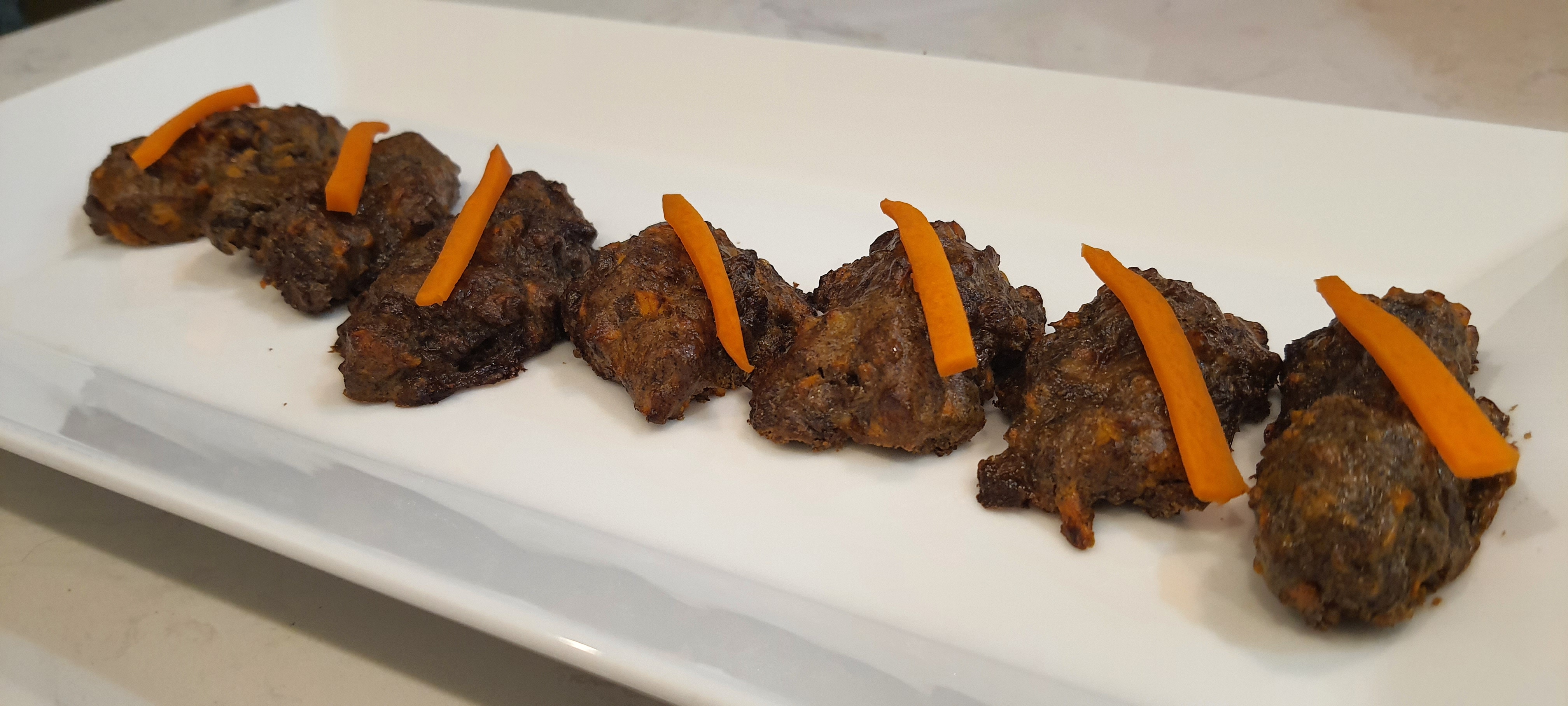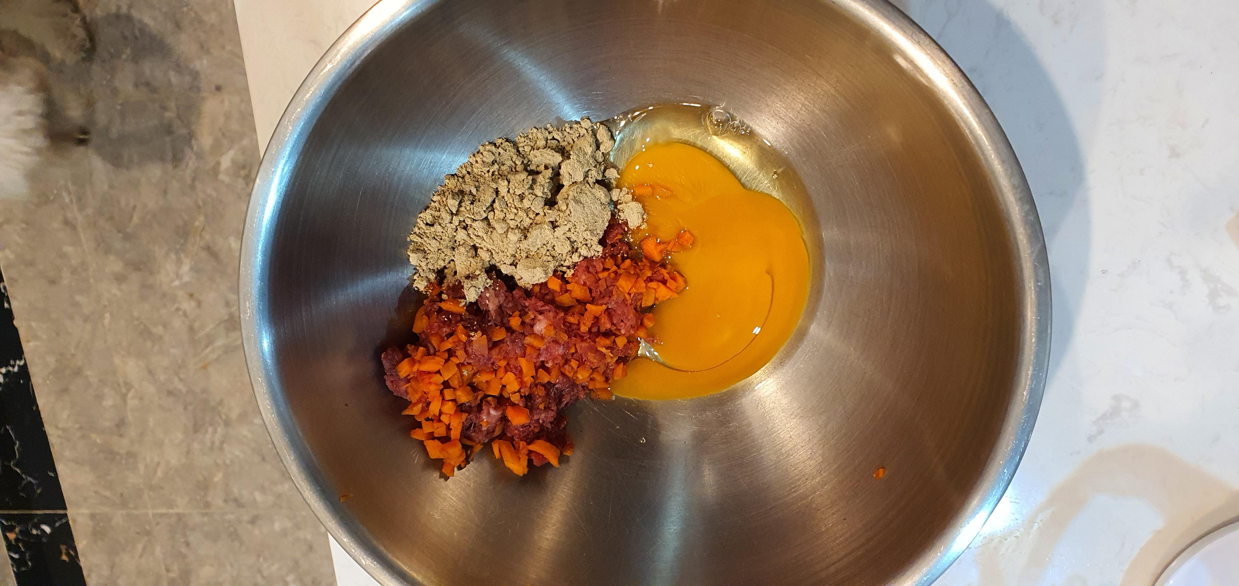재료는 소고기 부채살, 당근, 달걀, 검은 콩가루,,